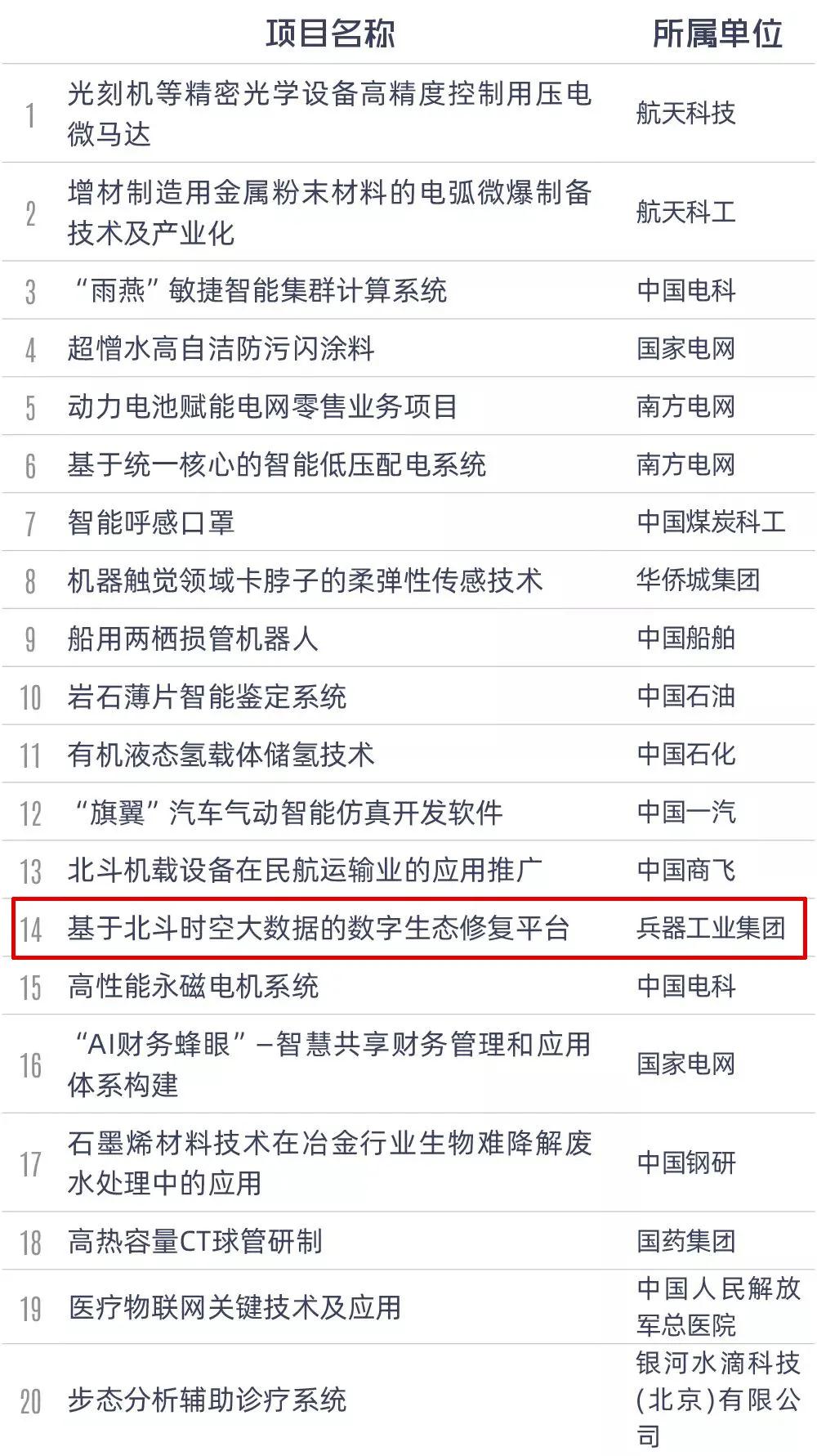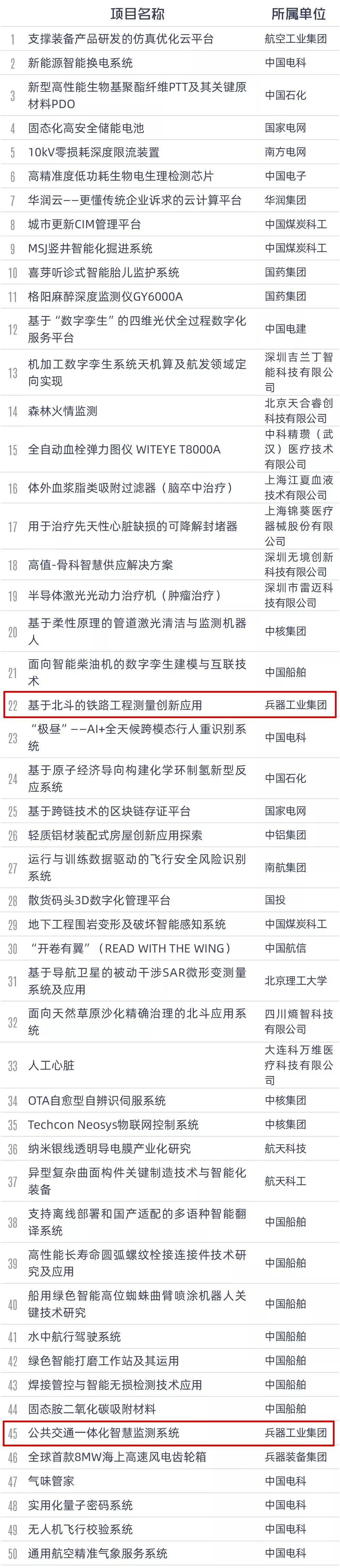 兵器工業集團獲獎項目