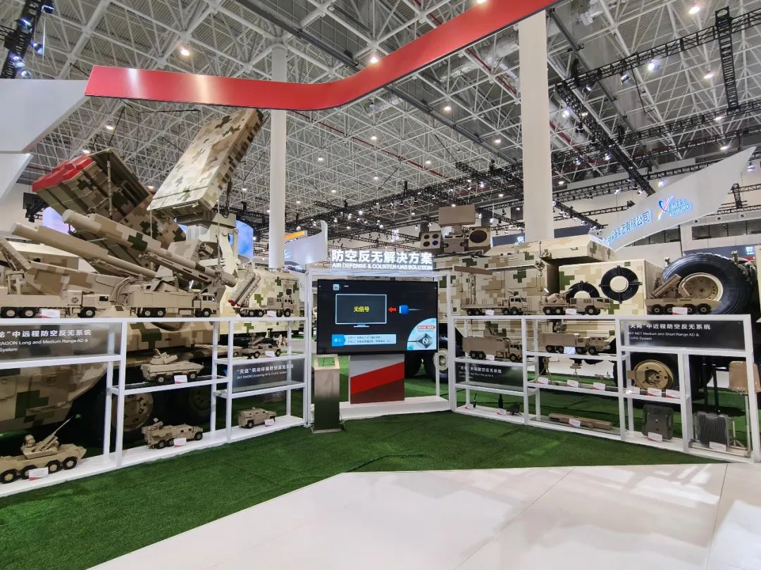 防空反導體系重點展示天龍一體化防空導彈武器系統、激光武器系統、彈炮結合防空武器系統等一系列防空武器,展現該體系點線面兼備,為防護單位構建起“金鐘罩”“鐵布衫”的防護效果。