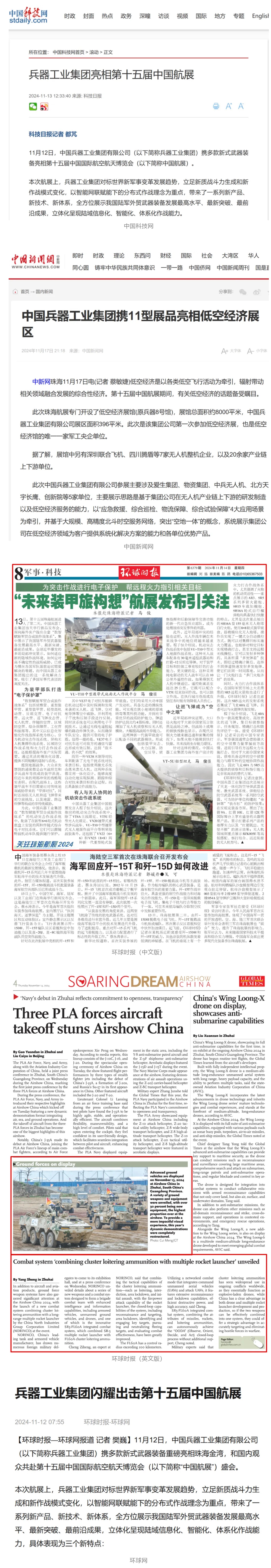 環球網:兵器工業集團閃耀出擊第十五屆中國航展2024-11-12